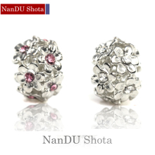 手工DIY饰品配件 藏银串珠/隔珠 大孔珠子 镶钻隔珠 满花环