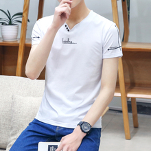 夏季男士短袖t恤紧身v领纯色潮流男装修身半袖上衣服黑白色打底衫
