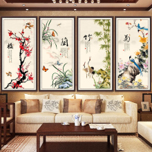新款5D钻石画满钻客厅梅兰竹菊四联画点贴钻十字绣砖石秀大幅竖版