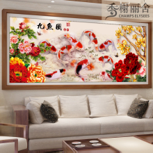 新款5D钻石画满钻家和万事兴荷花九鱼图贴钻十字绣客厅砖石秀点钻