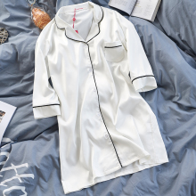 睡裙女夏季冰丝 韩版休闲宽松翻领性感家居服睡衣 长袖性感睡裙