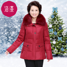洛熹 中老年羽绒服女加厚短款 妈妈冬装外套女40-50岁2016冬新款