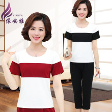 2017新款40-50岁妈妈装夏装短袖T恤中老年上衣服裤子中年女装套装