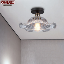 艺灯空间 美式乡村创意玻璃吸顶灯过道灯门厅灯荷叶花形玄关灯饰