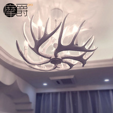 鹿角吊灯美式乡村客厅餐厅白吊灯酒吧地中海鹿角欧式创意树脂吊灯