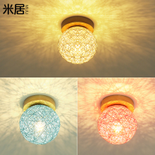 田园麻球藤艺LED过道玄关灯 走廊楼梯实木卧室衣帽间阳台吸顶灯具