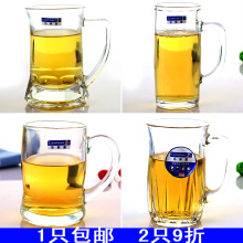 乐美雅带把玻璃水杯钢化加厚啤酒杯超大扎啤杯牛奶杯家用客房茶杯
