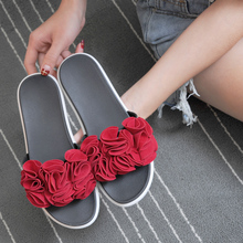 夏季新款凉拖百搭一字拖女花朵平底防滑休闲时尚外穿厚底沙滩拖鞋