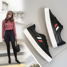 2017春季新款皮面小白鞋平底黑白色帆布鞋女学生韩版休闲板鞋百搭