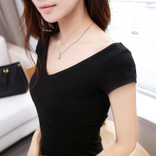 纯棉短袖t恤女夏季V领修身百搭打底衫纯色简约体恤大码女装韩版女