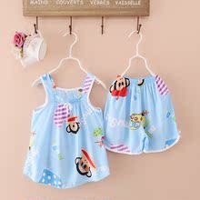 儿童绵绸睡衣薄夏季女孩小孩宝宝棉绸家居服吊带背心女童套装