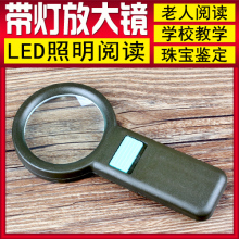 军绿超清晰手持放大镜80MM老人阅读教学金属珠宝玉石鉴定带灯检测