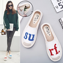 女士帆布鞋夏季2016新款懒人鞋女韩版平底平跟百搭乐福鞋学生鞋潮