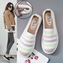 新款2017夏季帆布鞋透气网鞋女小白鞋学生韩版一脚蹬女鞋懒人鞋女