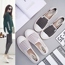 新款2017透气帆布鞋女夏季一脚蹬女鞋懒人鞋女小白鞋百搭平底鞋子