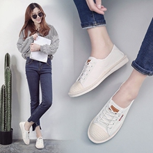 皮面春季一脚蹬懒人鞋女学生韩版百搭帆布鞋女鞋小白鞋平底休闲鞋