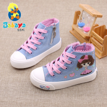 芭芭鸭2017春季新款儿童帆布鞋女童高帮卡通手绘板鞋休闲鞋运动鞋