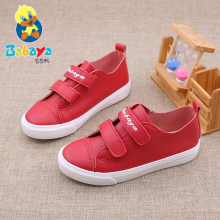 芭芭鸭2017春款真皮韩版潮童儿童帆布鞋男女童鞋低帮休闲运动板鞋