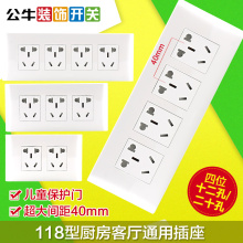 公牛118型开关插座12孔十二孔厨房电源20孔二十孔多功能墙壁面板