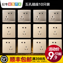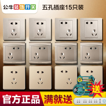 公牛开关插座118型三位中盒9孔15孔香槟金色九孔墙壁厨房插座面板