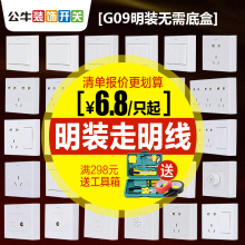 公牛明装开关插座86型五孔墙壁插座明线5孔墙面电源插座面板