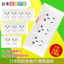 公牛118型开关插座三位中盒9孔15孔厨房客厅专用九孔墙壁面板插座