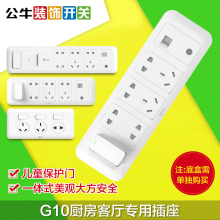 公牛厨房专用插座面板家用10A五孔8孔插座带开关墙壁电源开关面板