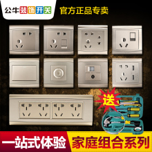 公牛开关插座86型暗装5五孔墙壁电源香槟金色铝拉丝二三插座面板