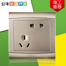 bull公牛开关插座86型五孔暗装饰拉丝香槟金色5插位电源墙壁面板