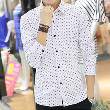 2016春夏薄款男士长袖波点衬衫男商务休闲免烫正装男修身韩版男装
