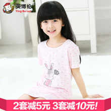 英博伦女童短袖睡裙夏季莫代尔儿童睡衣中大童女孩薄款宝宝家居服