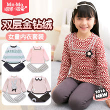 瑁恩瑁爱女童双层金钻绒内衣套装宝宝秋冬儿童加绒加厚小童童装