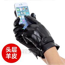 头层羊皮男式时尚秋冬保暖修手贴身柔软表带搭扣真皮触屏手套