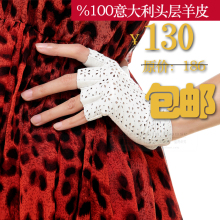 头层小羔羊皮女式镂空防晒驾驶健身透气柔软真皮露指半指手套