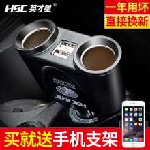 英才星车载充电器一拖二车充汽车点烟器usb车用手机多功能转接头
