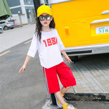 女童套装夏装2017新款韩版时尚两件套中大童七分阔腿裤儿童短袖潮