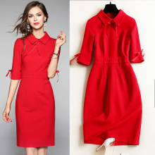 红色连衣裙2017新款夏时尚气质娃娃领新娘回门礼服女晚宴会红裙子