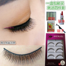 包邮手工假睫毛浓密眼尾拉长短款自然硬梗单眼皮 10对/盒 送胶水