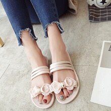 平底拖鞋女夏2017新款珍珠一字拖韩版百搭外穿防滑沙滩凉拖鞋潮