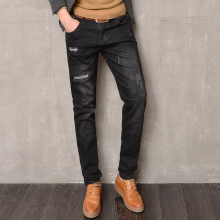 稀有黑色 春夏百搭潮男小脚破洞铅笔牛仔裤男小直筒微锥牛仔长裤