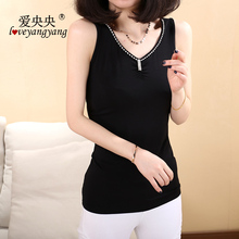 背心 女韩版闪钻鸡心领无袖打底无袖衫大码木代尔吊带背心 女