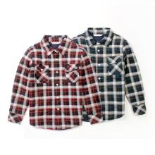B2内销冬款童装 中大童纯棉双层夹棉格子衬衫 男孩青少年加厚棉衬