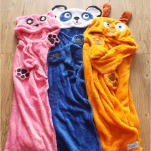 外贸儿童珊瑚绒连帽造型浴巾浴袍 男女宝宝可爱家居毛毯睡袍抱毯