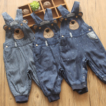 外贸男女童秋冬牛仔背带裤纯棉婴幼儿6-12个月双层牛仔背带裤开裆