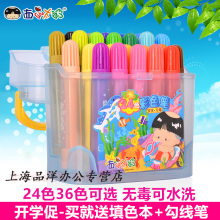 西瓜太郎学生24/36色水彩笔 儿童水洗无毒桶装画画涂鸦幼儿园团购