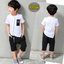 2017新款男童套装棉麻夏装短袖中大童3-4岁5-6儿童韩版两件套潮8