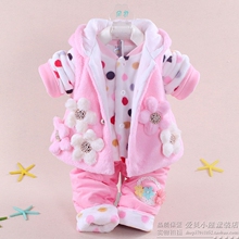 女童装三件套装秋冬新款3-6-9个月婴儿童夹棉衣服0-1-2岁宝宝冬装