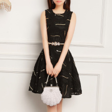 2017春夏季淑女气质重工绣花钉珠圆领收腰荷叶摆无袖连衣裙背心裙