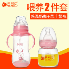运智贝感温奶瓶宽口防胀气pp奶瓶带小果汁奶瓶婴儿用品【2件套】