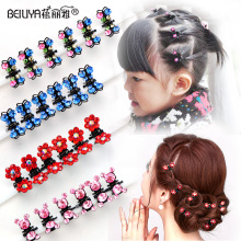 蓓丽雅韩国儿童发饰头饰品女孩可爱宝宝盘发夹水钻抓夹水晶12个装